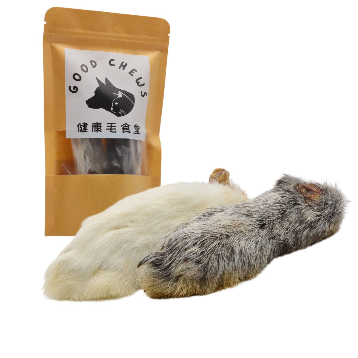 帶毛兔腳-2入│脫水乾燥│天然犬貓零食│潔牙骨│貓狗生食