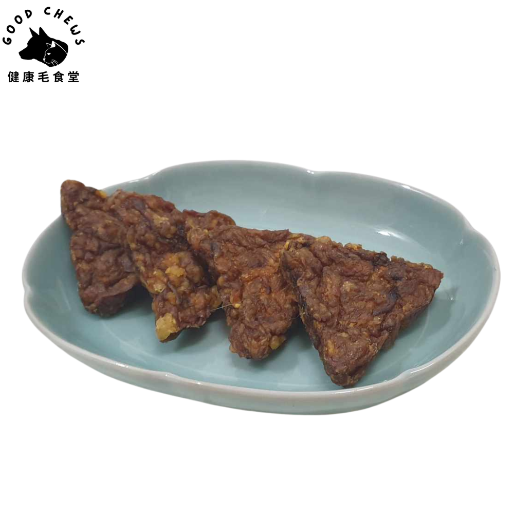 - ※兔肉乾之外型視採購廠彈性調整,形狀不固定,可能為塊狀或片狀。